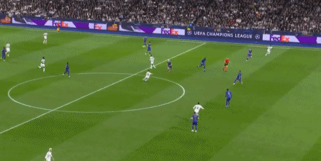 第31分钟,戈洛温左路突破横传,特泽离门30米外起脚兜射,直奔球门右上角而去,击中横梁弹出,皇马逃过一劫。