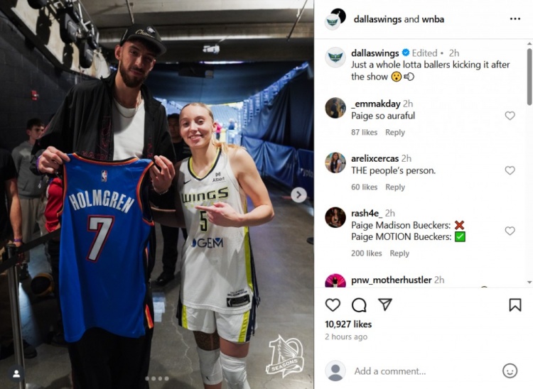 赛后,飞翼官方晒出了布克斯与太阳球员杰伦-格林以及雷霆球员切特-霍姆格伦的合影,并配文道:“不过是一群大佬在精彩表现后聚在一起罢了😮💨”
